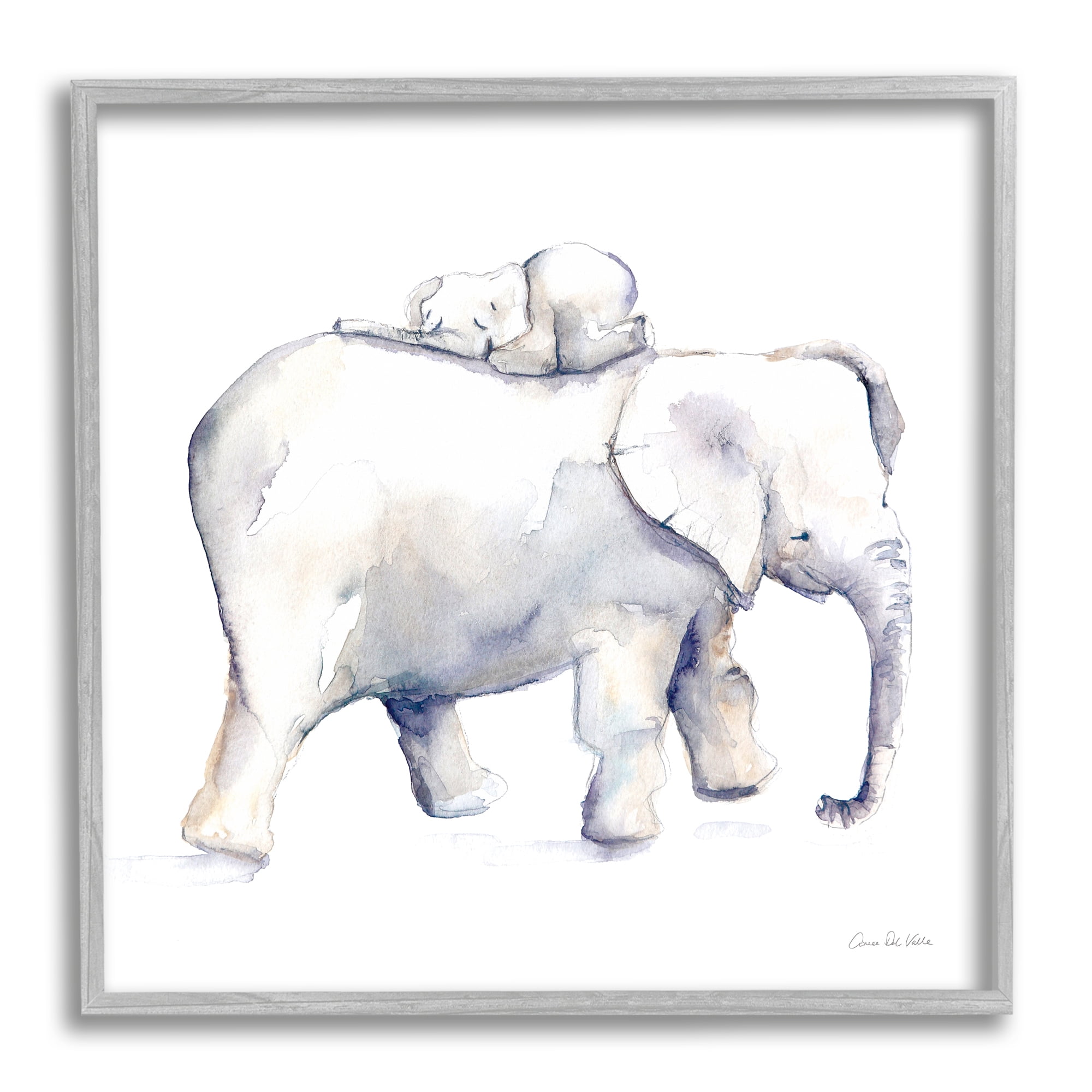 Children S Baby Elephant Sleeping On Mother Safari Animal 12 In X 12 In Framed Painting Art Print By Stupell Home Decor Walmart Com